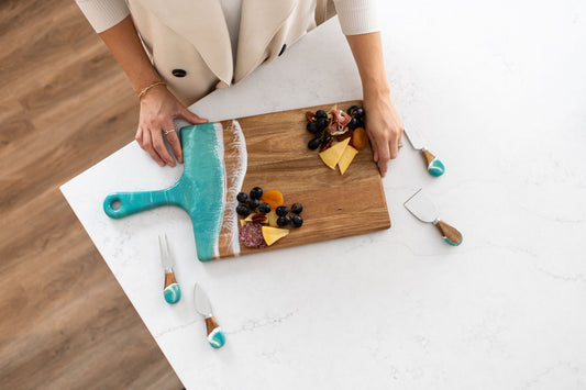 I bought the cheeseboard for my niece who entertains a lot. When she opened the box, the look on her face was priceless. She said “I love love this cheeseboard” then promptly displayed it on the island in her magnificent kitchen. I wish I had thought to take a photo, but the cheeseboard matched the brushed gold handles on her cabinetry and the pure white with just a hint of marbleized gold in the kitchen island. So I’m pretty sure my Christmas gift was a hit! Now I want one!!