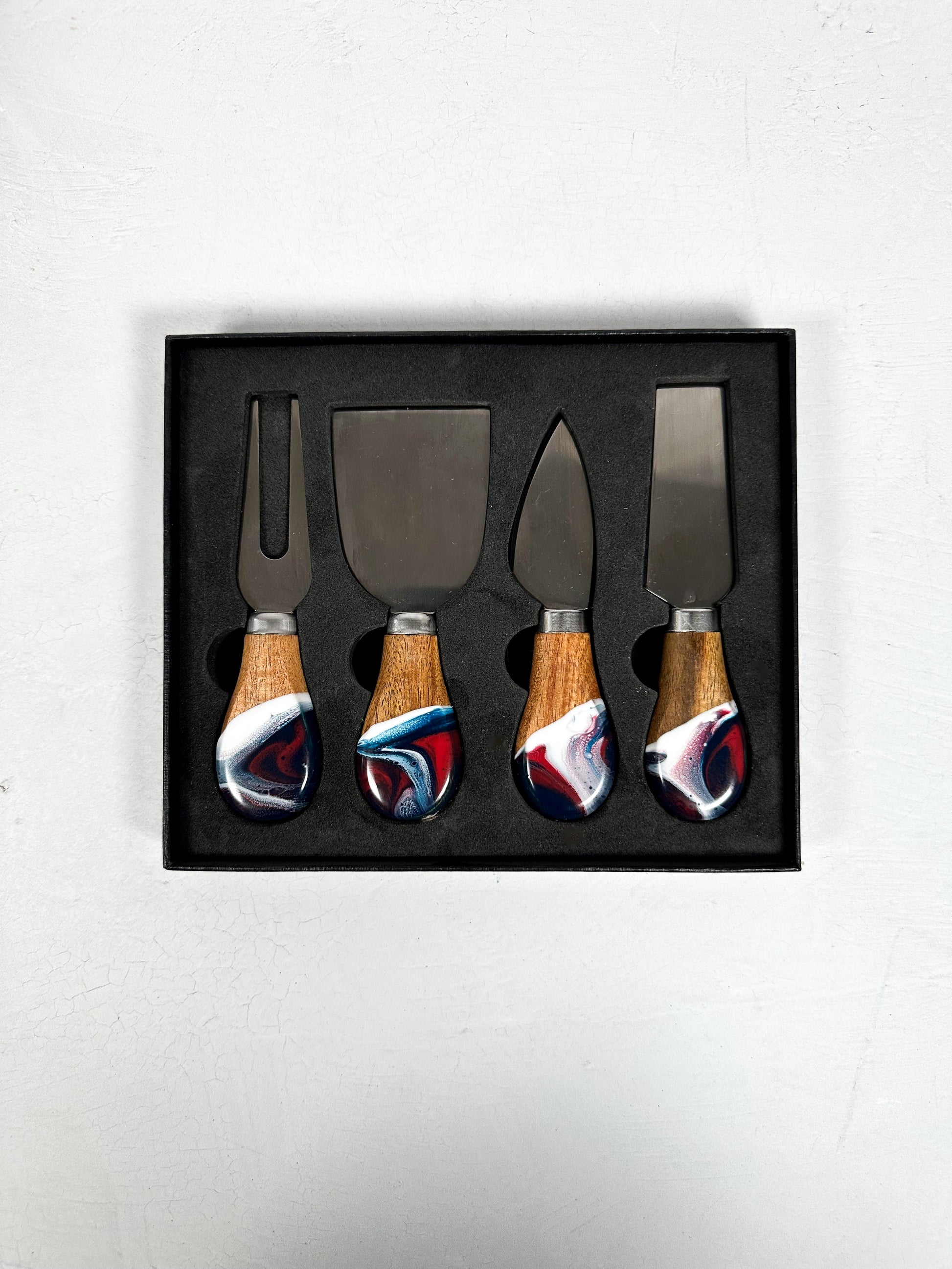 Here’s a great suggestion from one of our customers: If you want to use one of our cheese boards as a cutting board, use the back of the board for cutting and the front for serving. The resin portion could scratch if used for cutting.