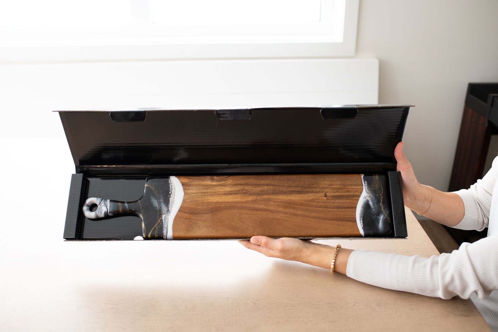 Our cheese boards and serving trays now come in beautiful Lynn & Liana black gift boxes to make your gift presentation even more spectacular!