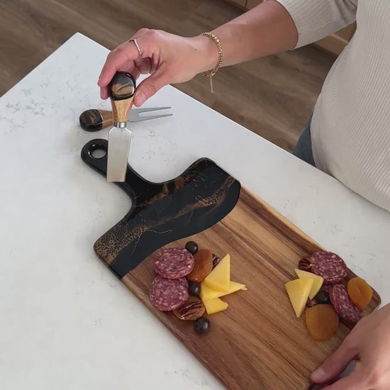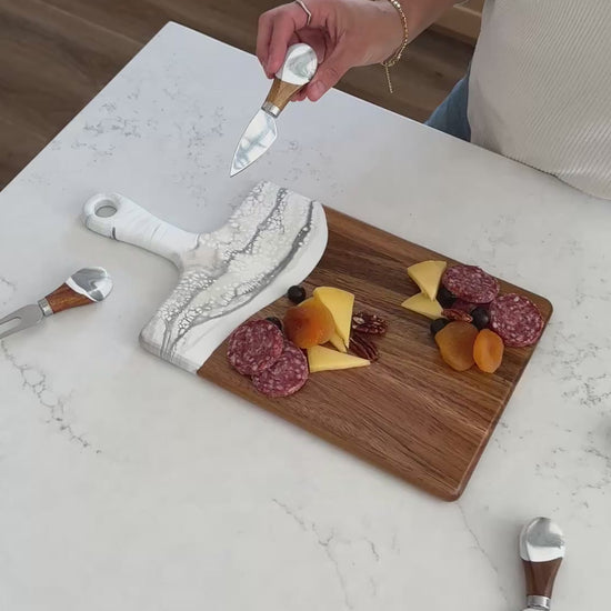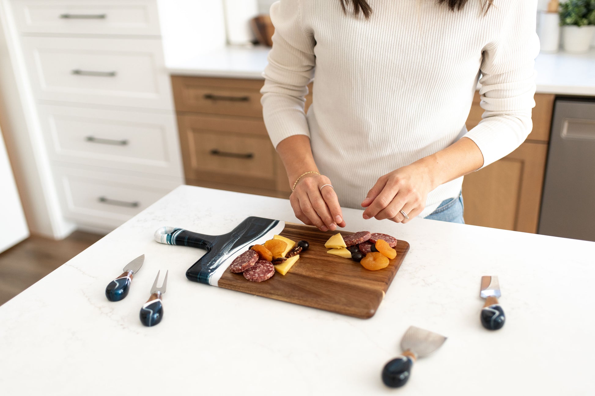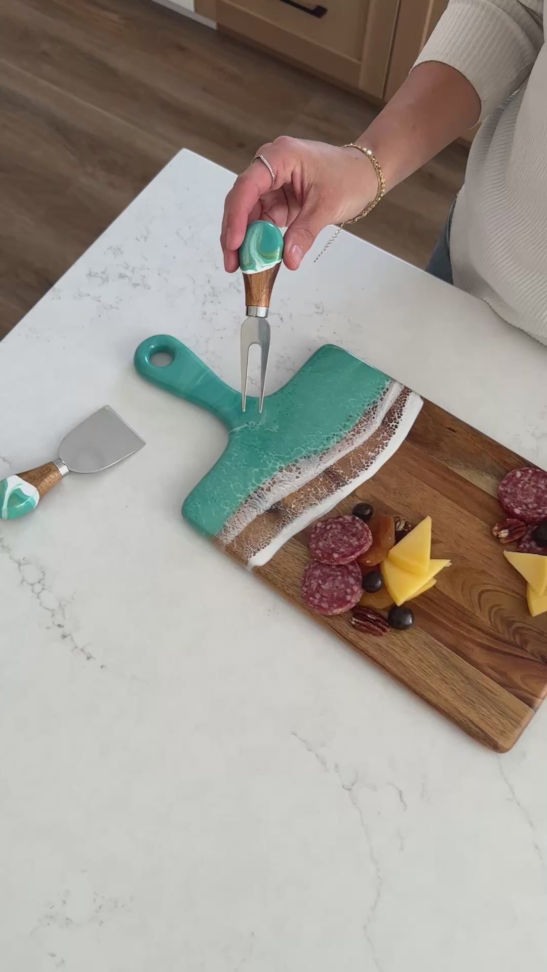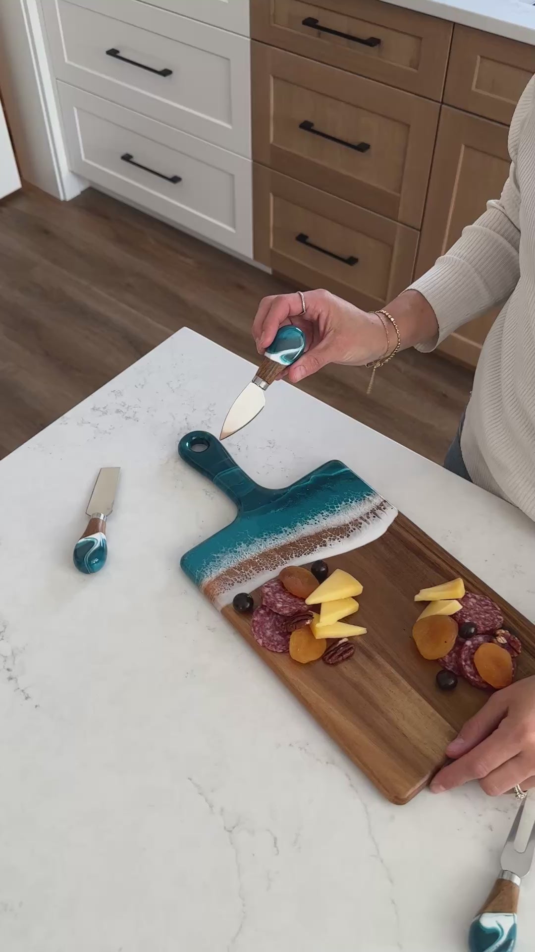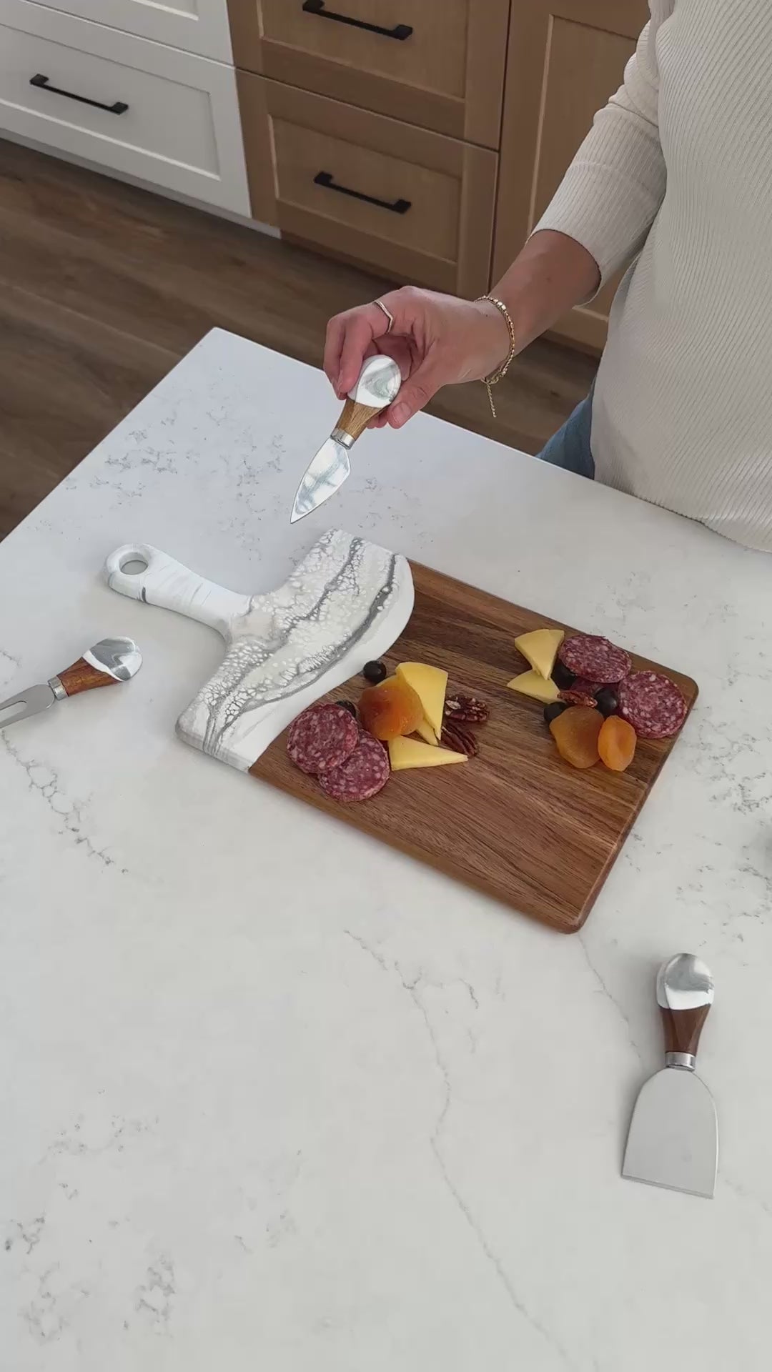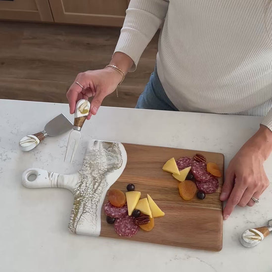 I bought the cheeseboard for my niece who entertains a lot. When she opened the box, the look on her face was priceless. She said “I love love this cheeseboard” then promptly displayed it on the island in her magnificent kitchen. I wish I had thought to take a photo, but the cheeseboard matched the brushed gold handles on her cabinetry and the pure white with just a hint of marbleized gold in the kitchen island. So I’m pretty sure my Christmas gift was a hit! Now I want one!!