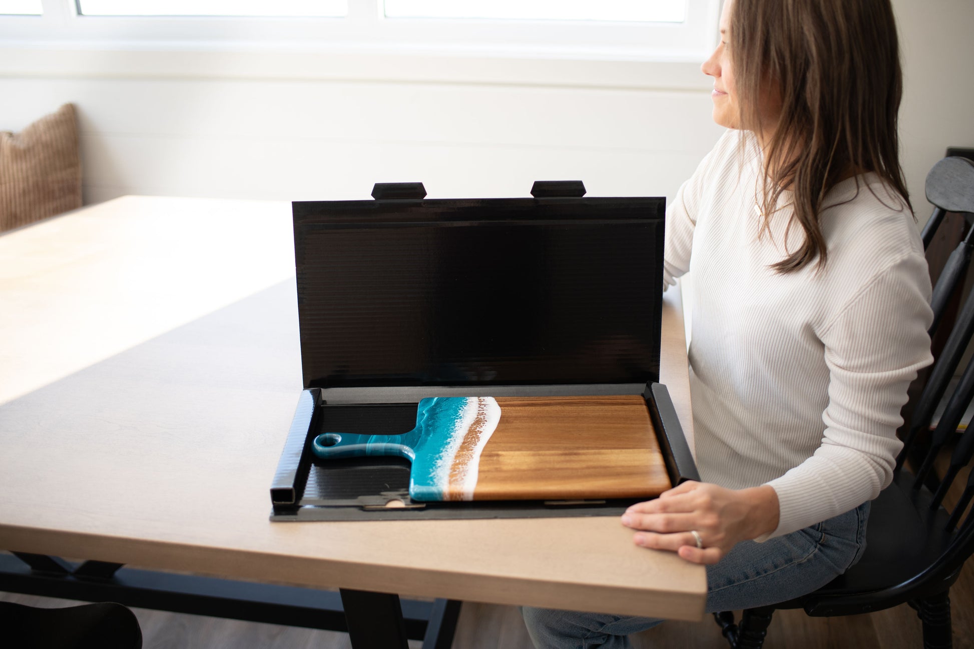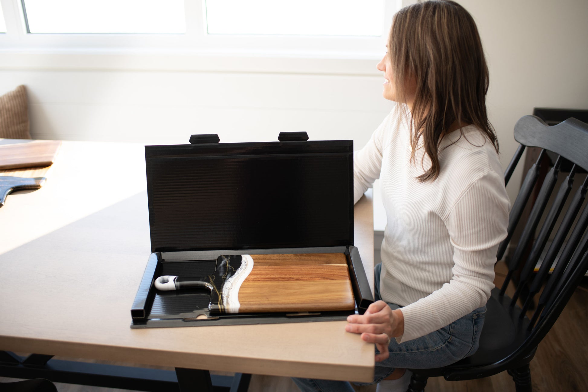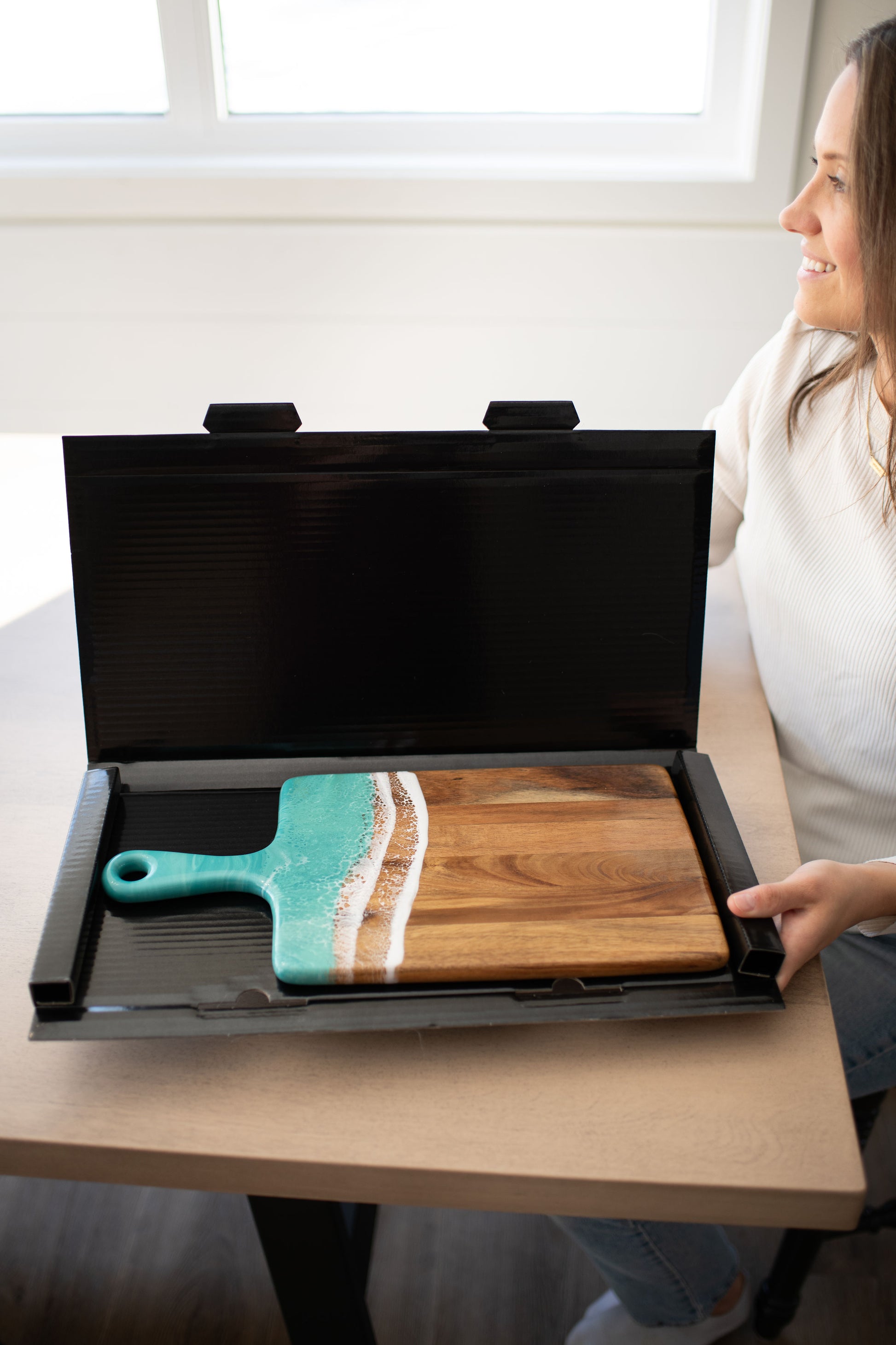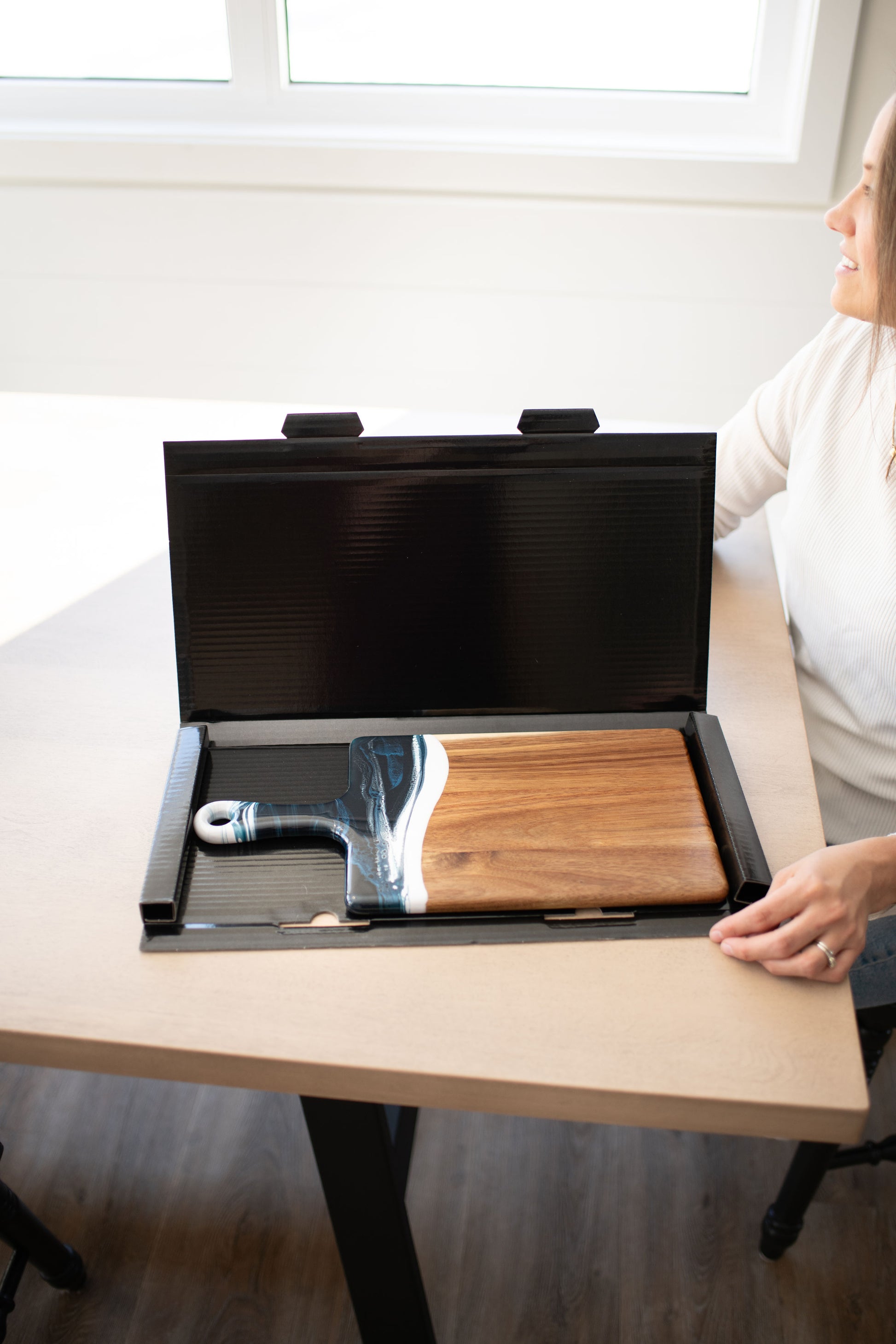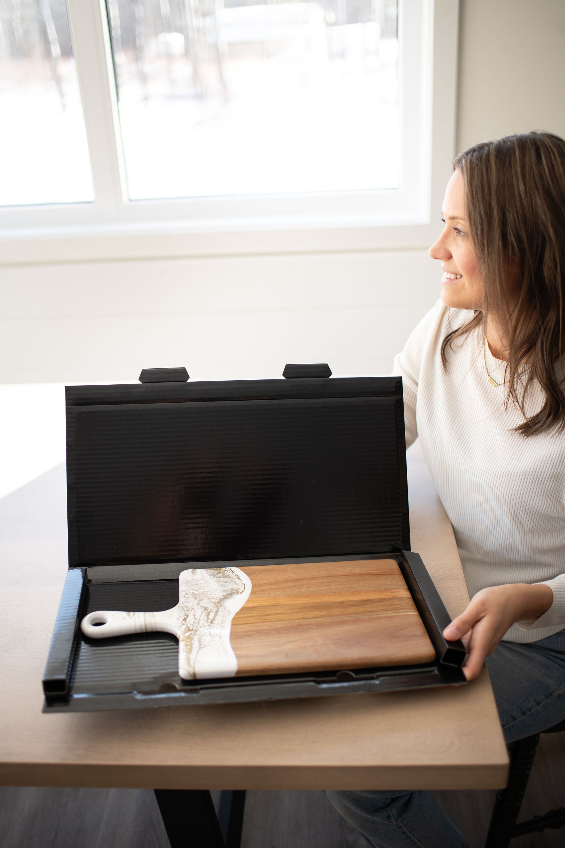 I bought the cheeseboard for my niece who entertains a lot. When she opened the box, the look on her face was priceless. She said “I love love this cheeseboard” then promptly displayed it on the island in her magnificent kitchen. I wish I had thought to take a photo, but the cheeseboard matched the brushed gold handles on her cabinetry and the pure white with just a hint of marbleized gold in the kitchen island. So I’m pretty sure my Christmas gift was a hit! Now I want one!!