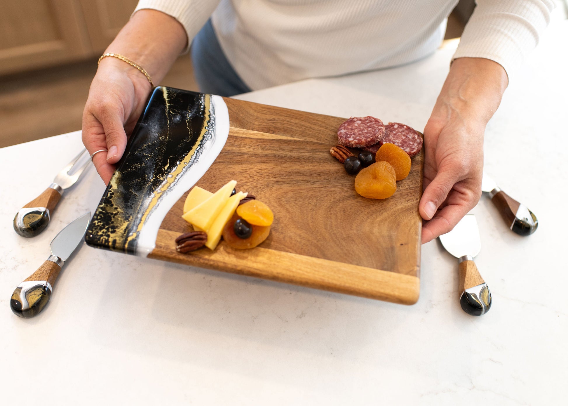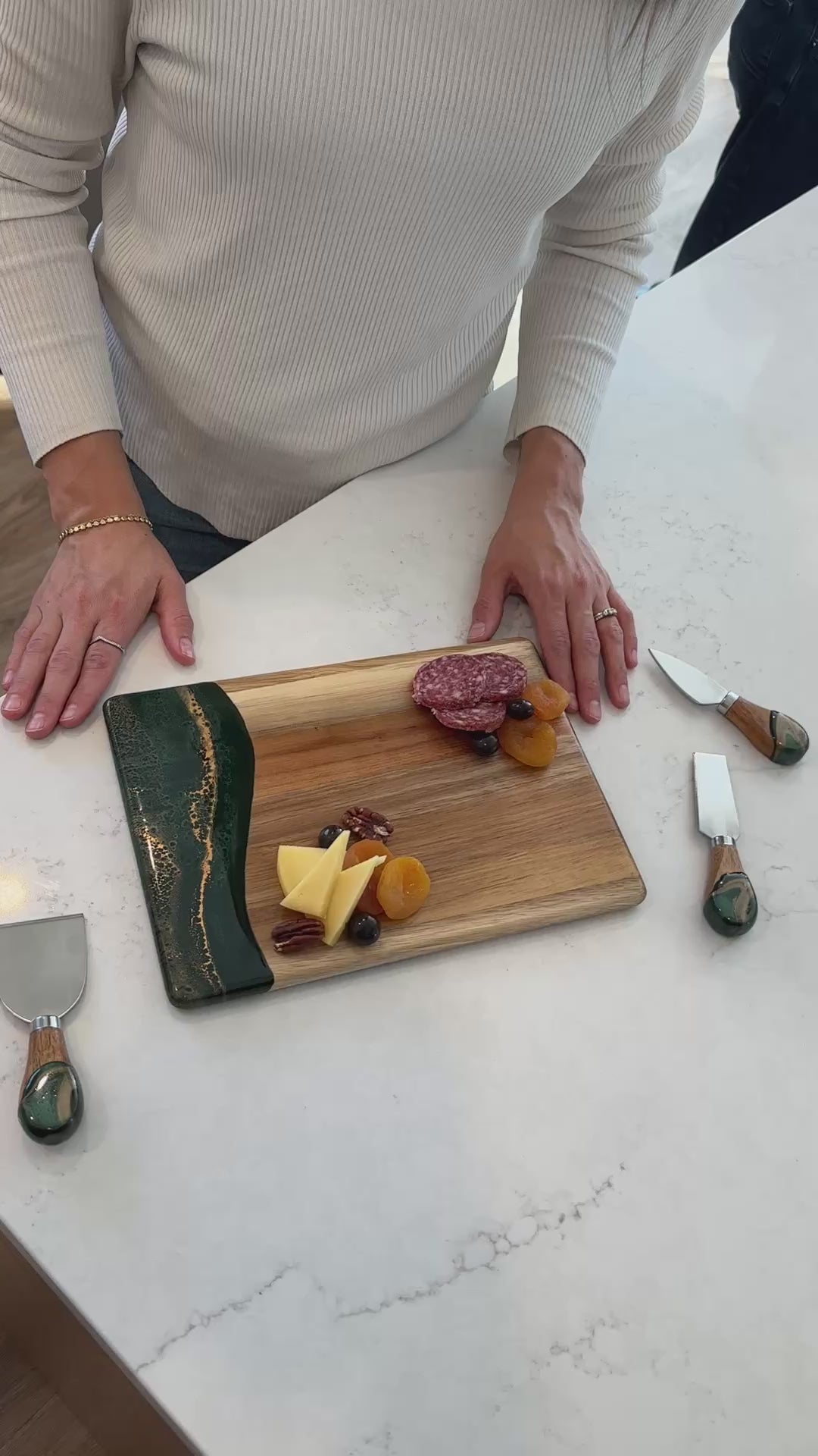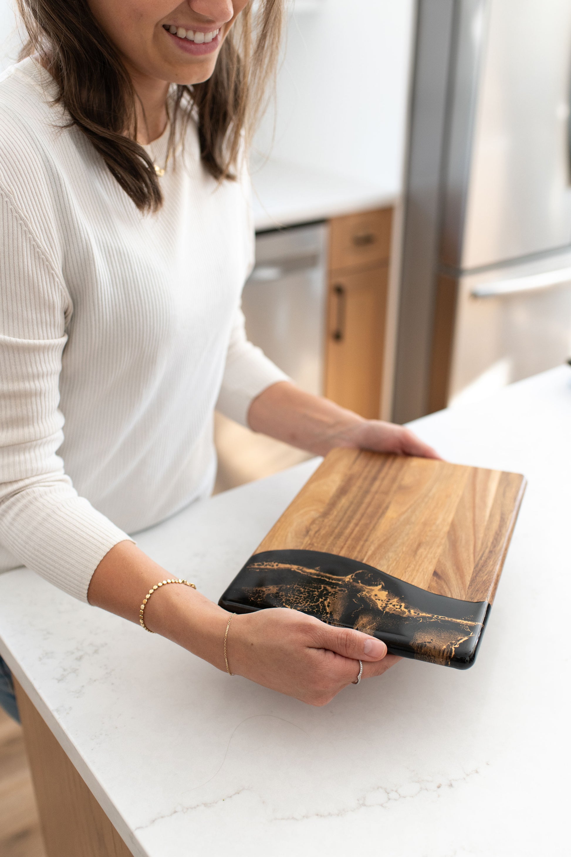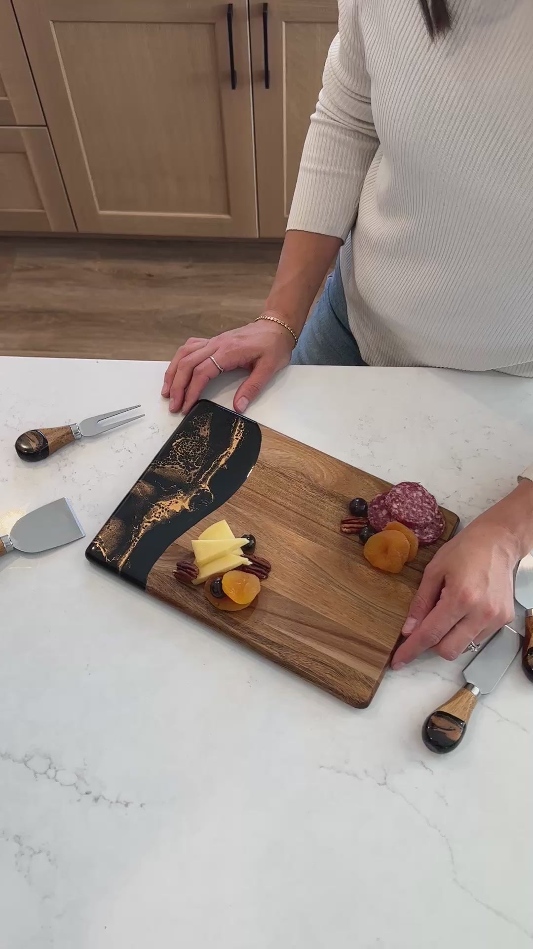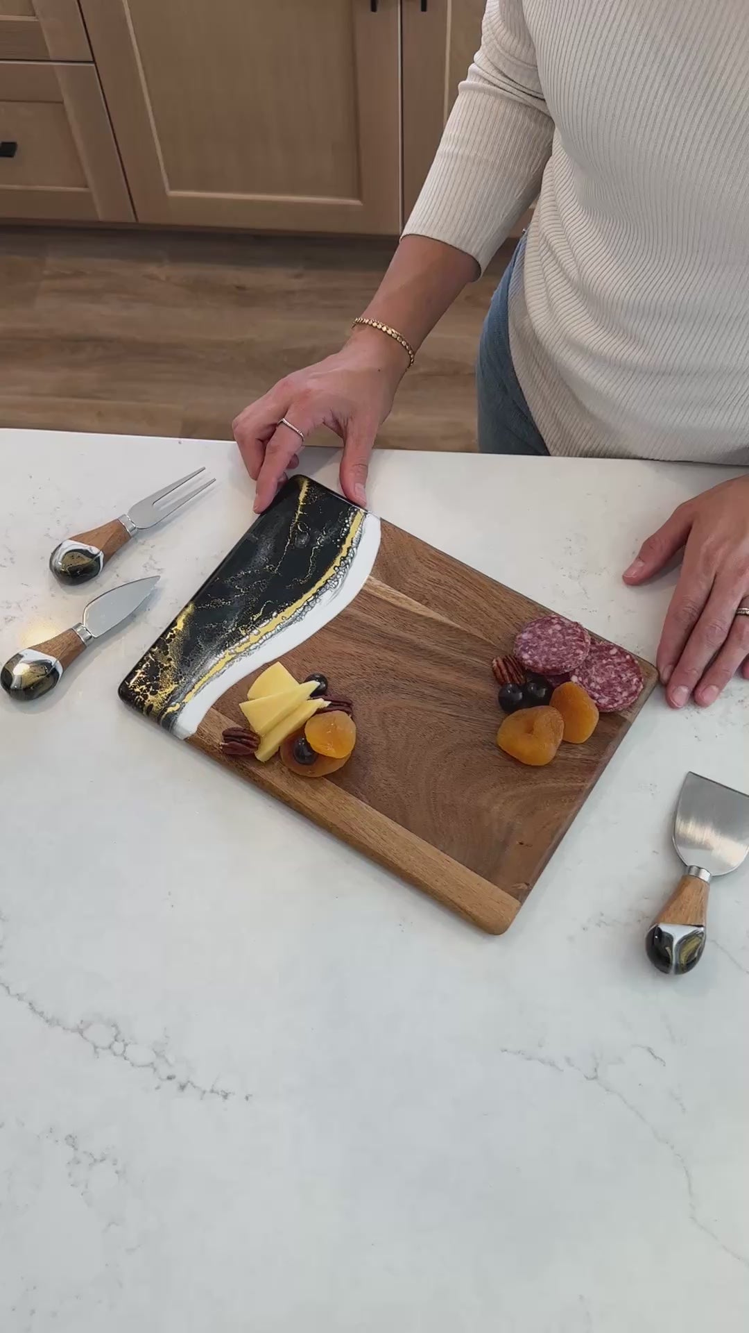These beautiful boards are not only useful but so beautiful I leave it out on my counter all the time. A true work of art and my latest favorite gift !!!