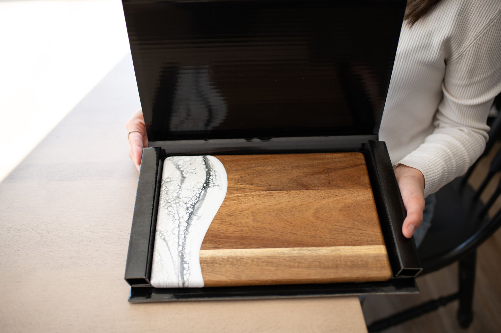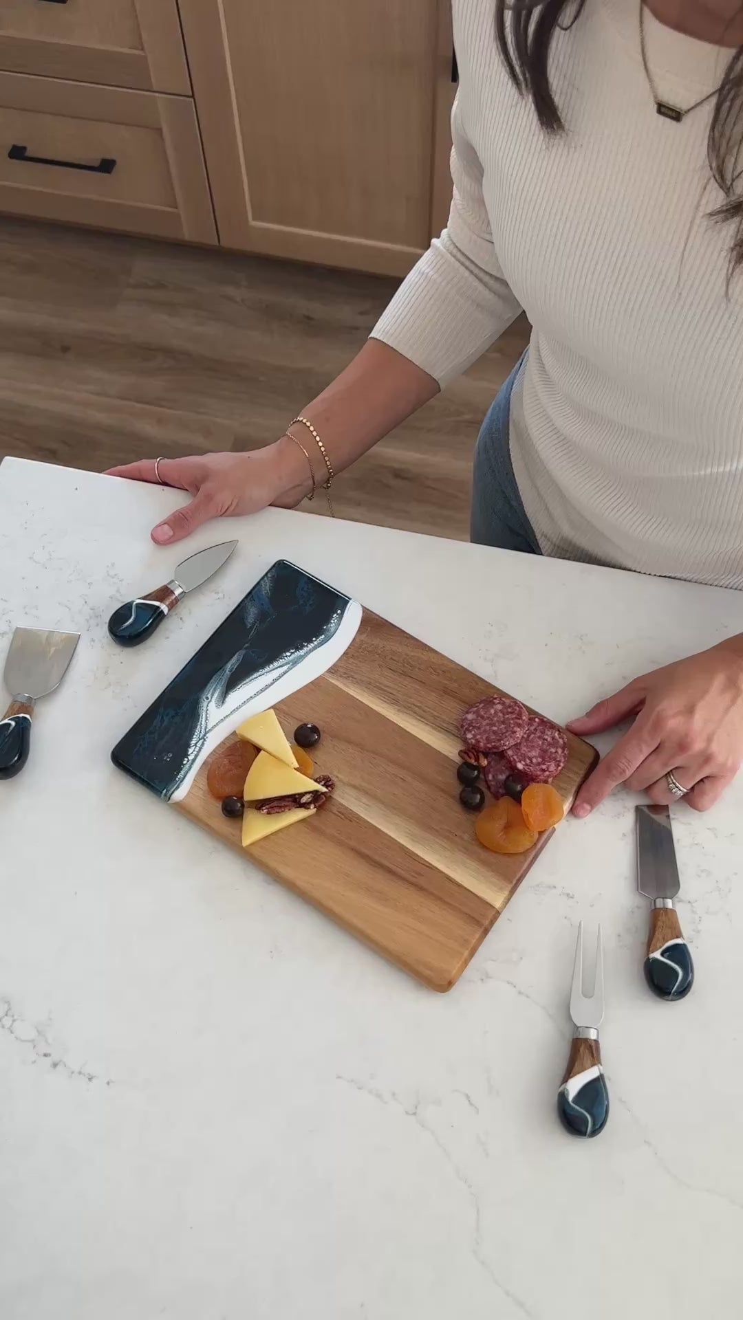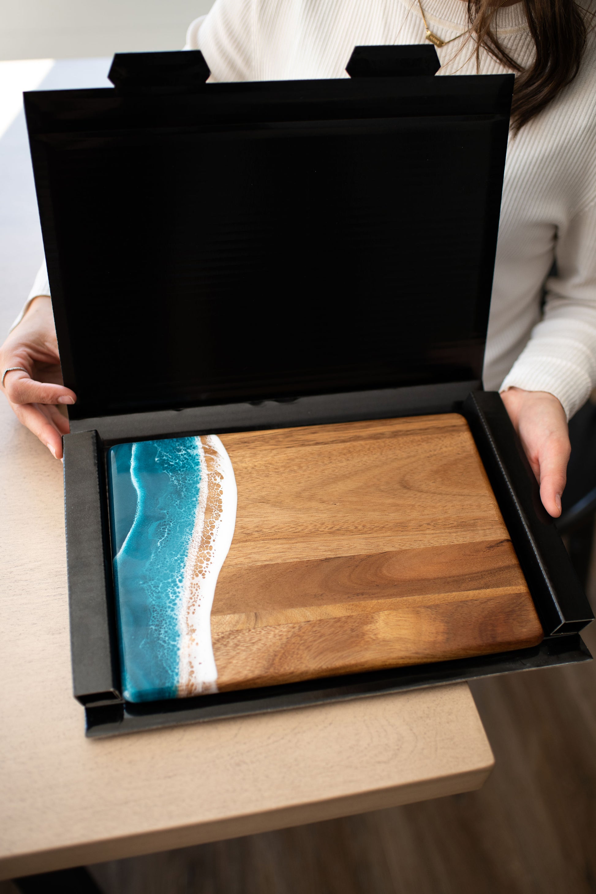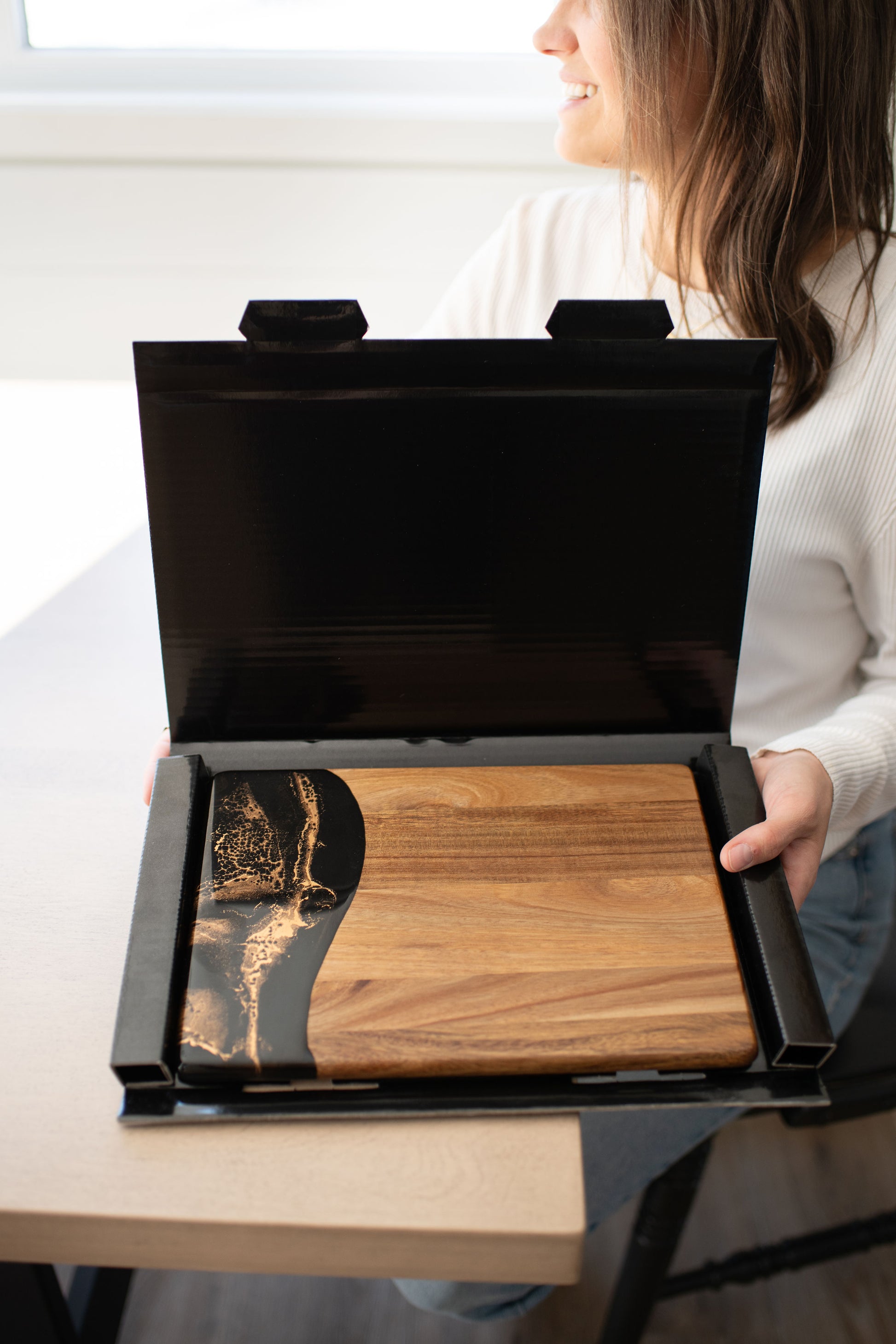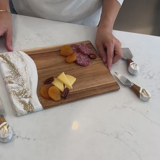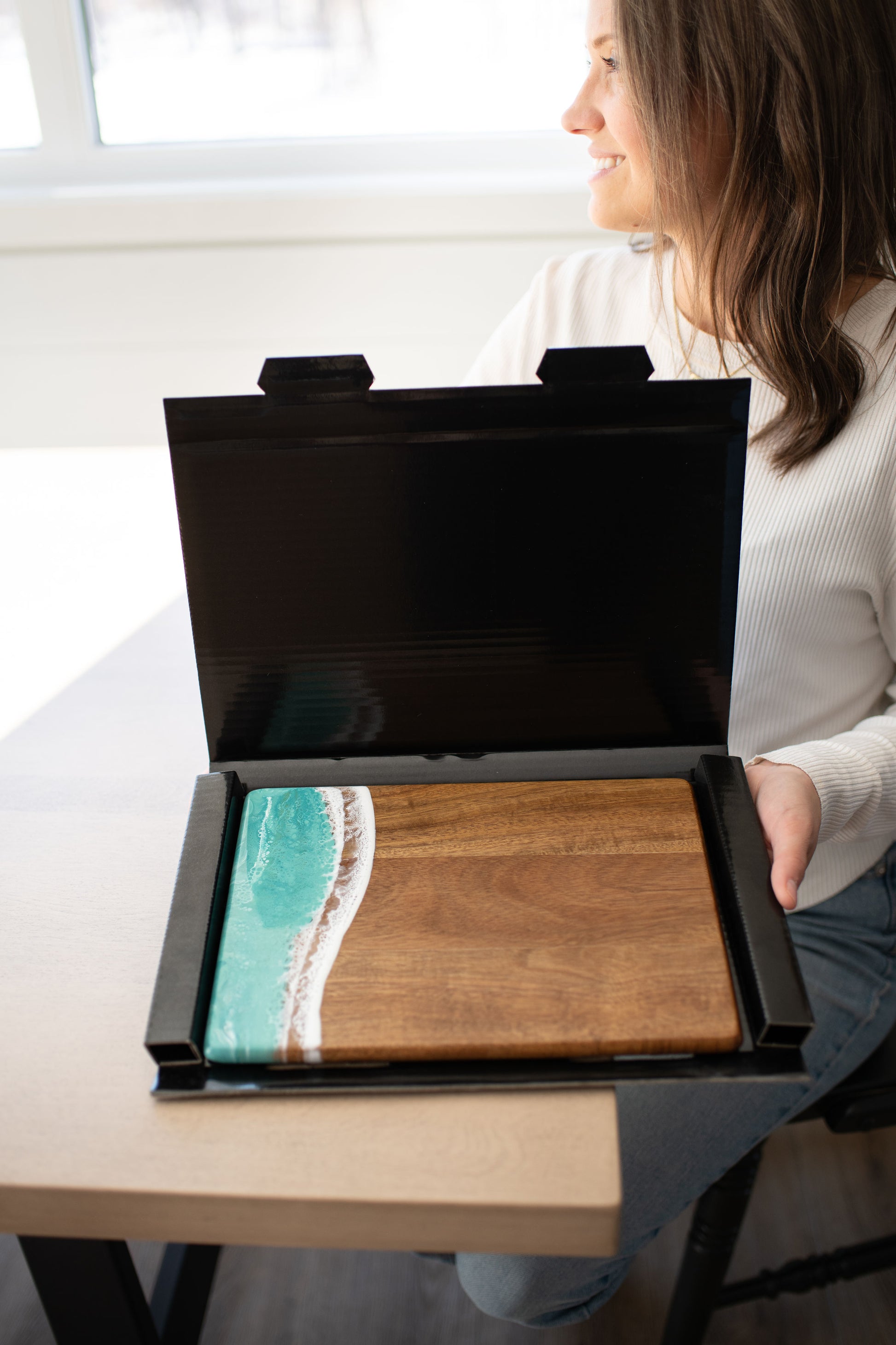 These beautiful boards are not only useful but so beautiful I leave it out on my counter all the time. A true work of art and my latest favorite gift !!!