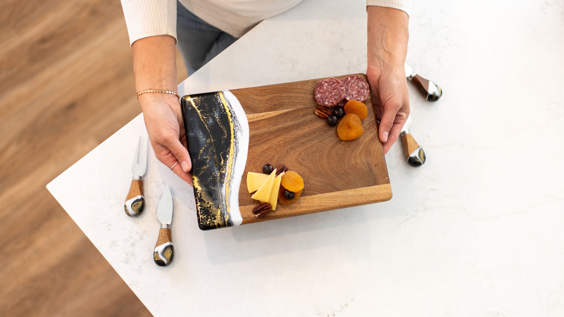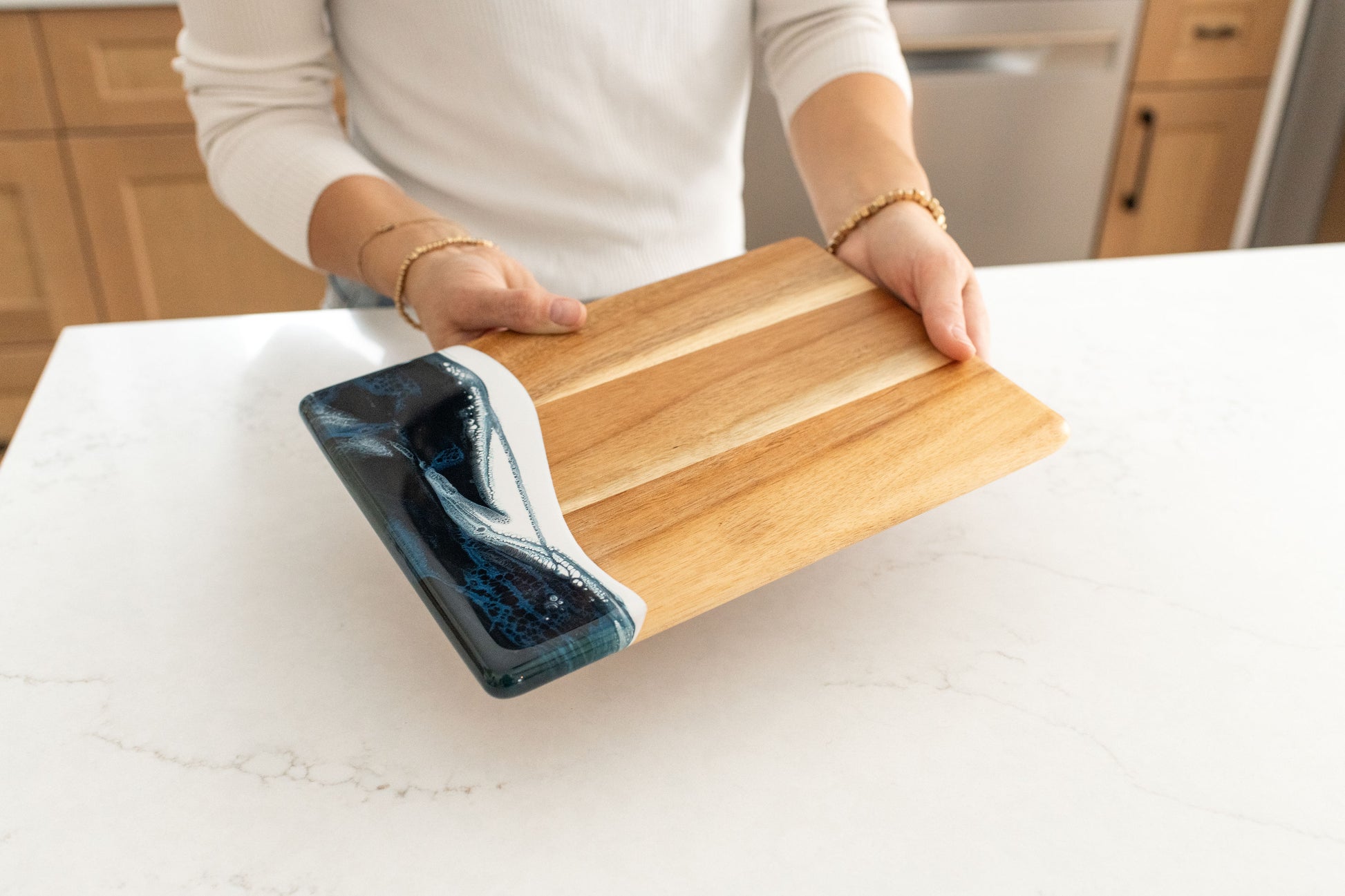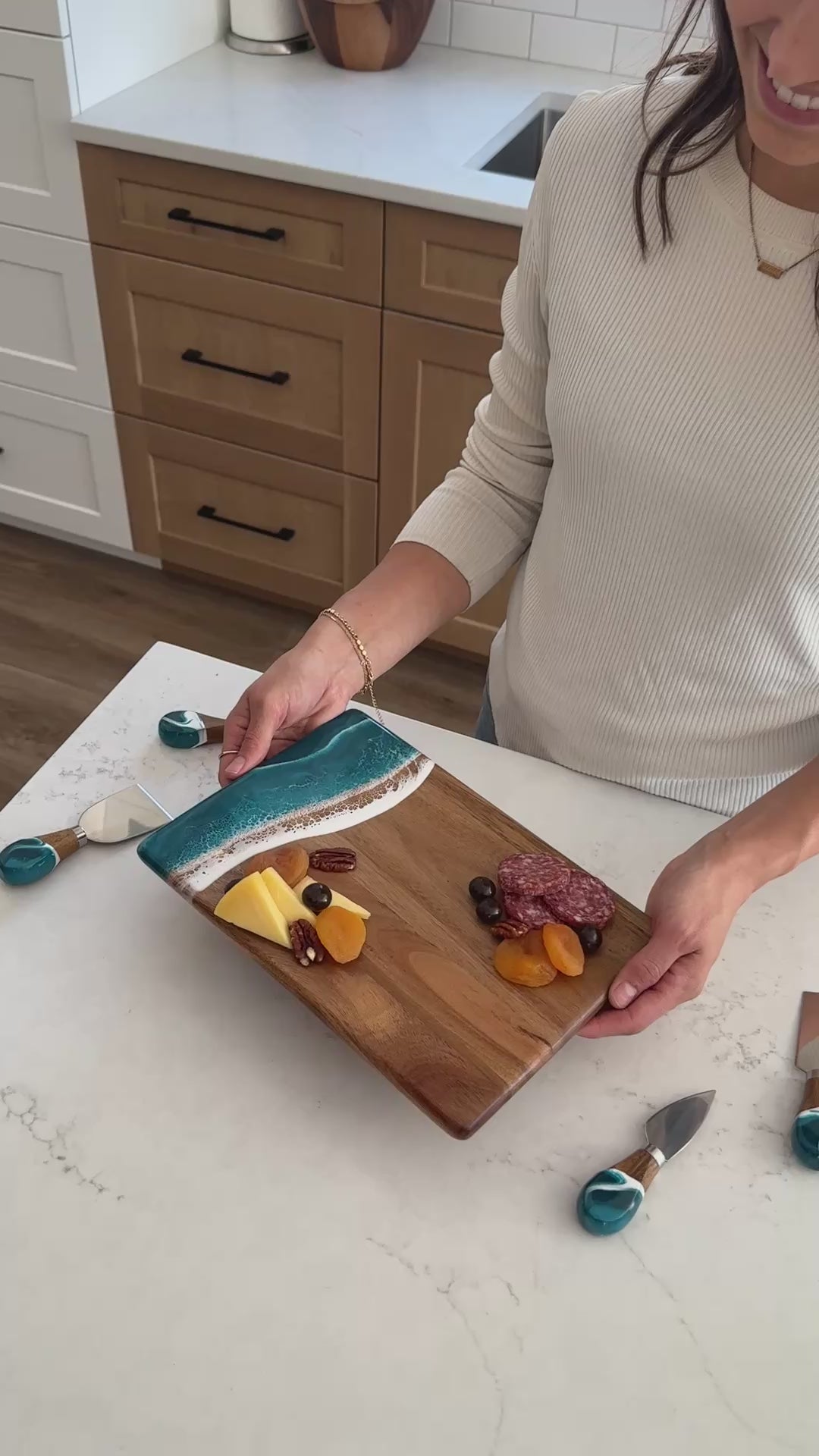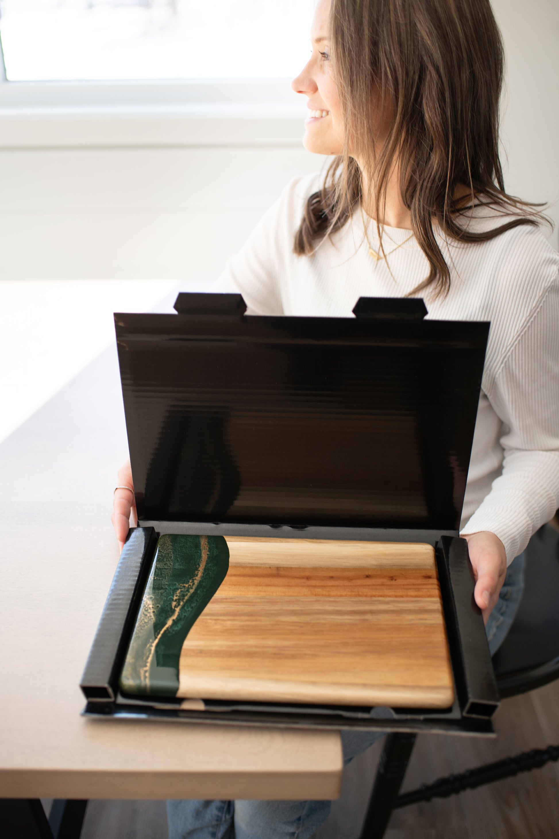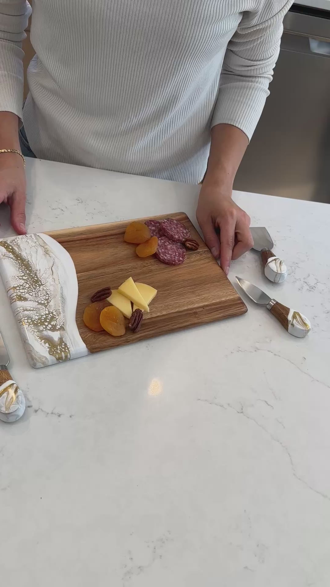 These beautiful boards are not only useful but so beautiful I leave it out on my counter all the time. A true work of art and my latest favorite gift !!!