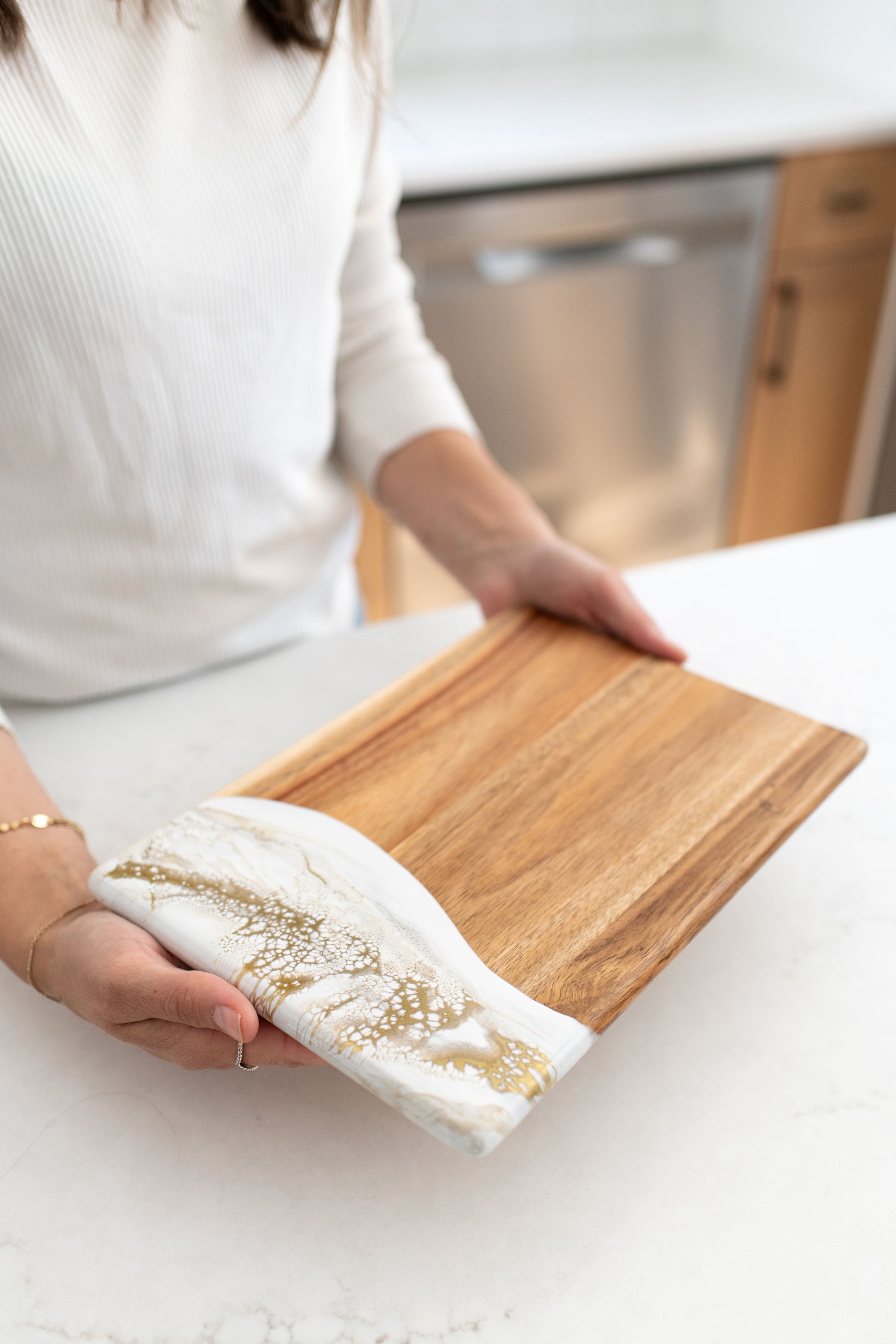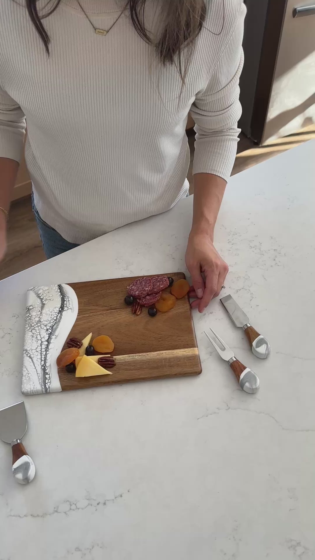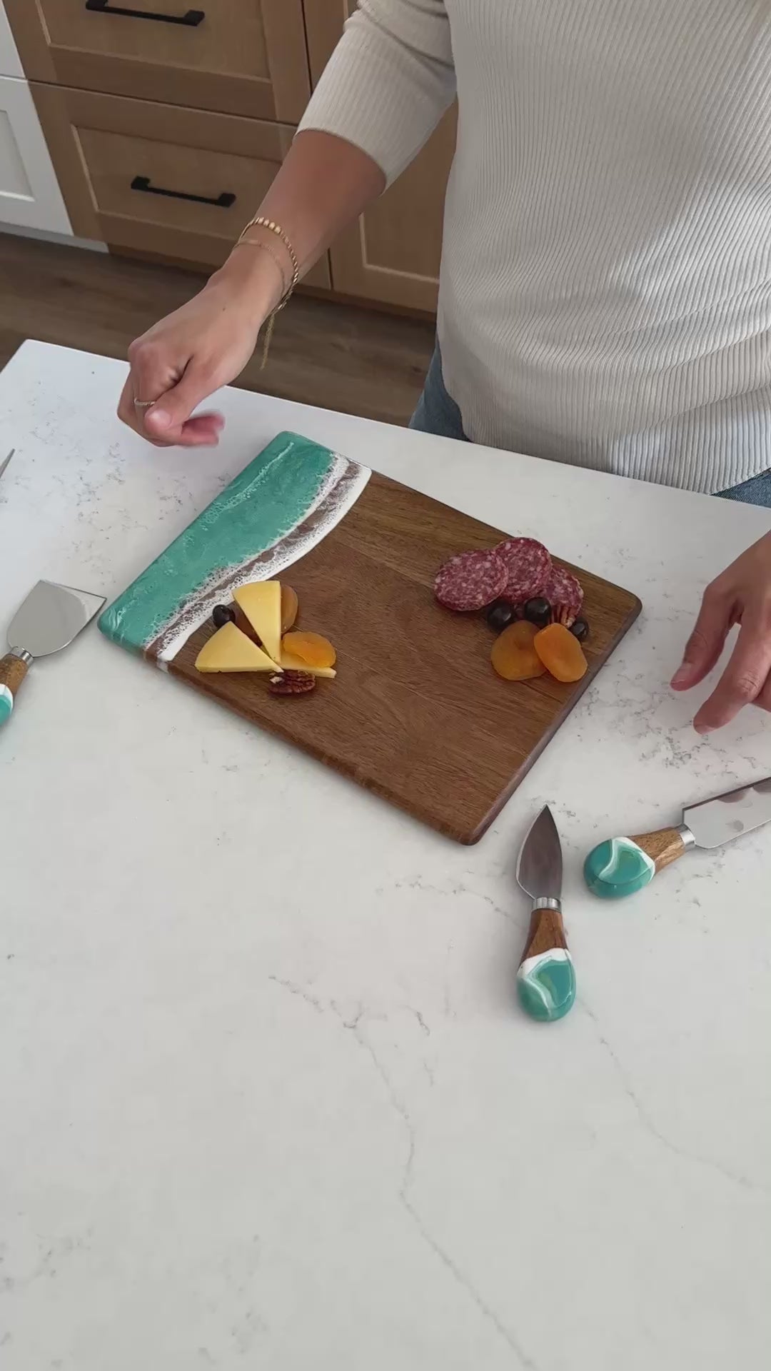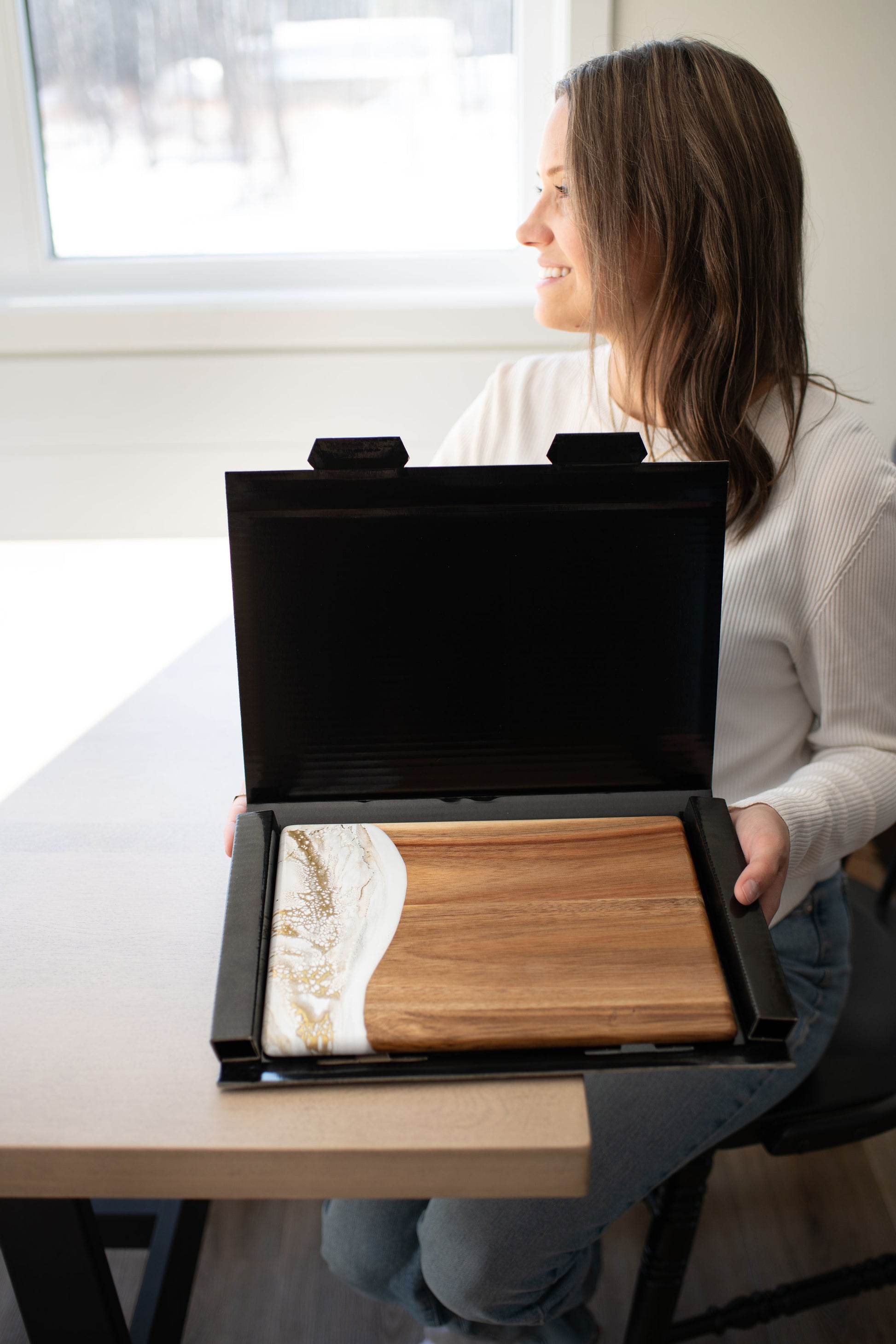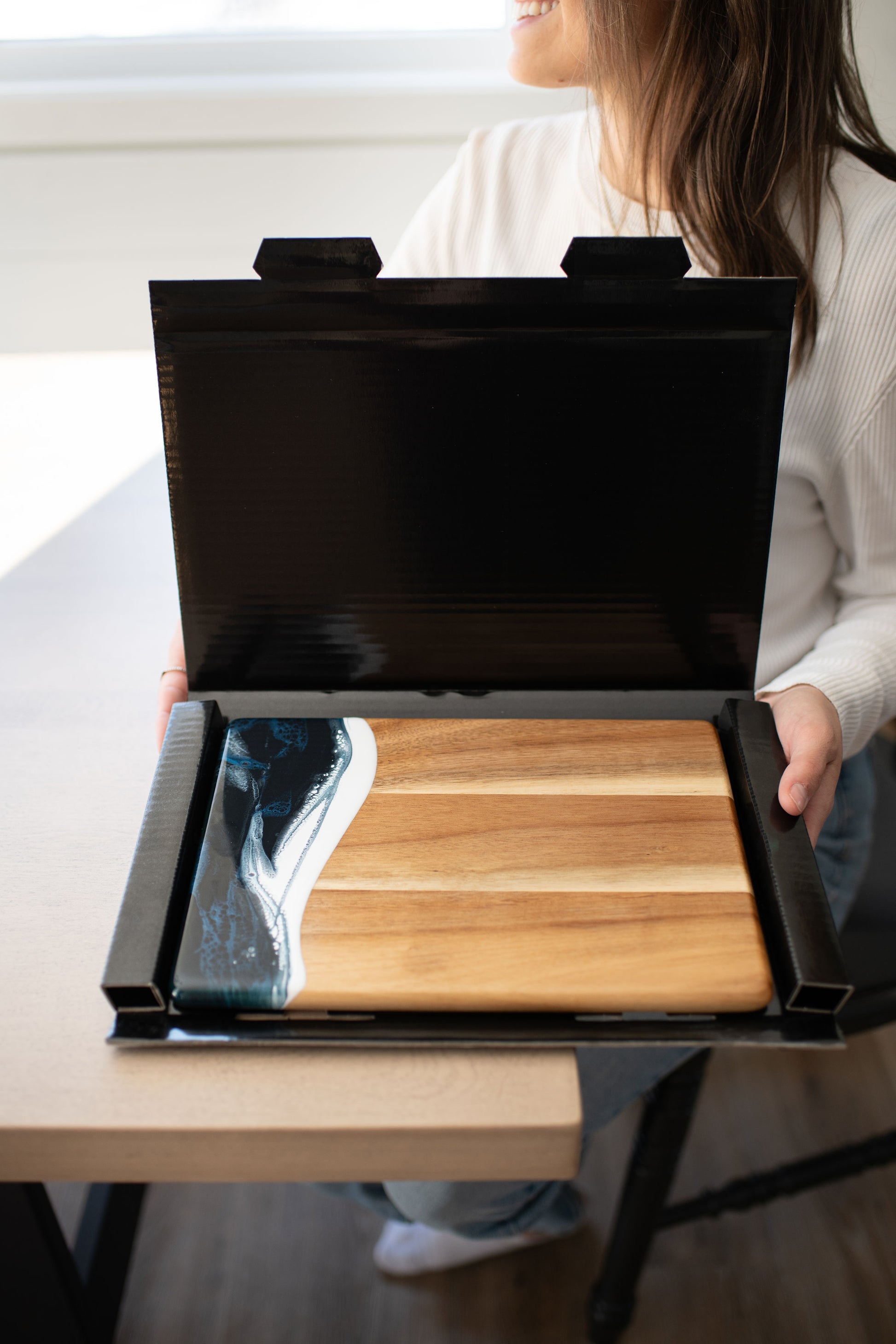 These beautiful boards are not only useful but so beautiful I leave it out on my counter all the time. A true work of art and my latest favorite gift !!!