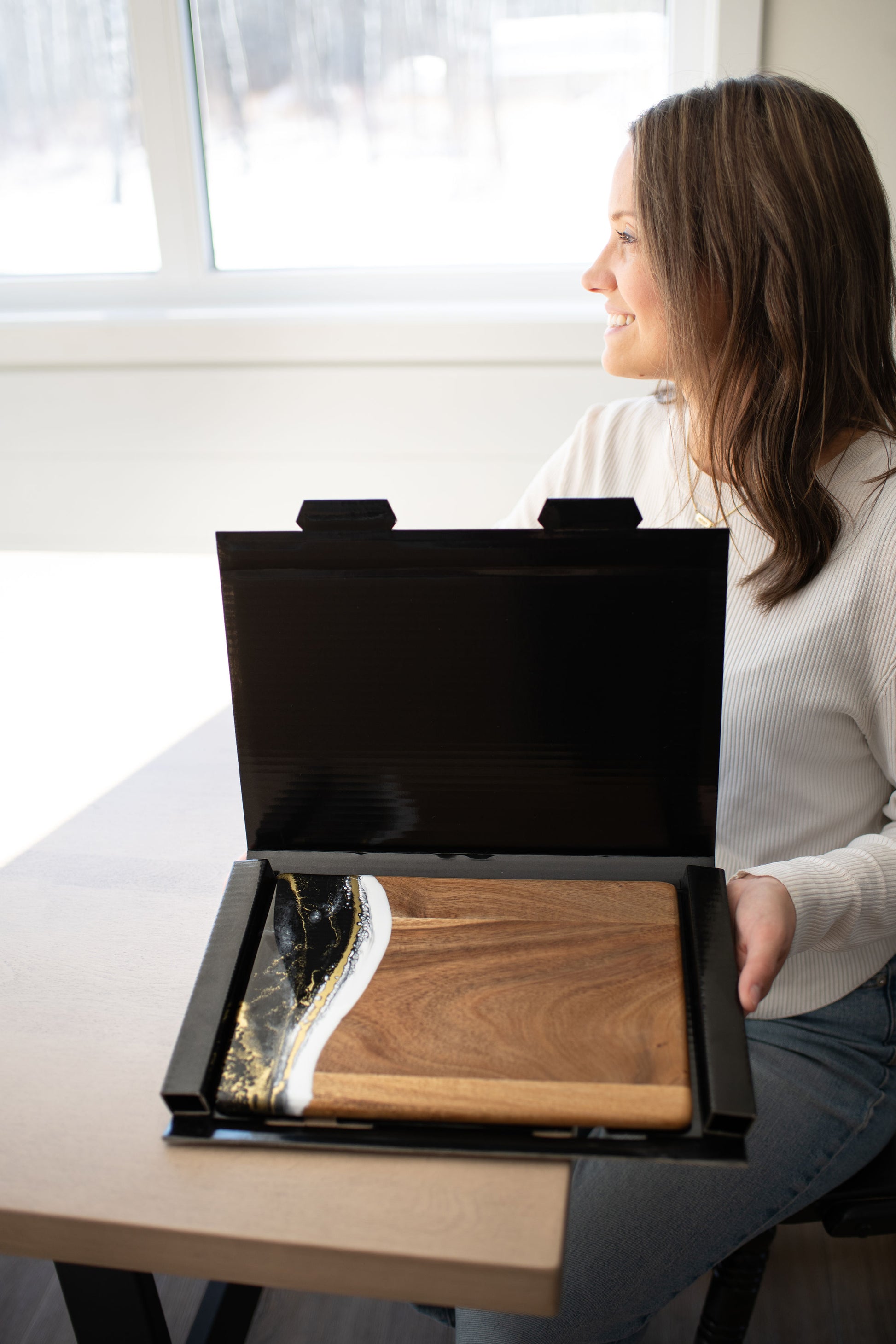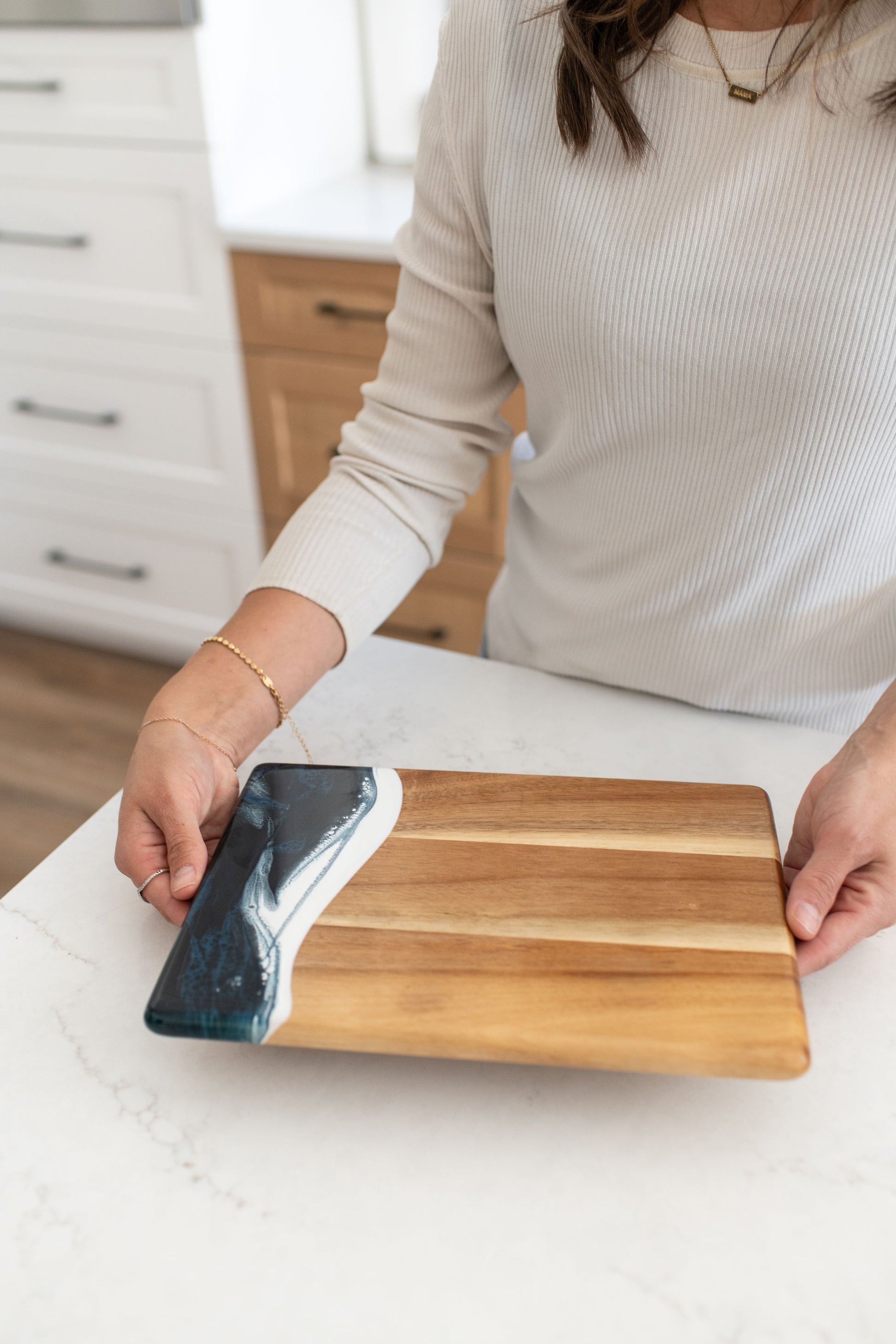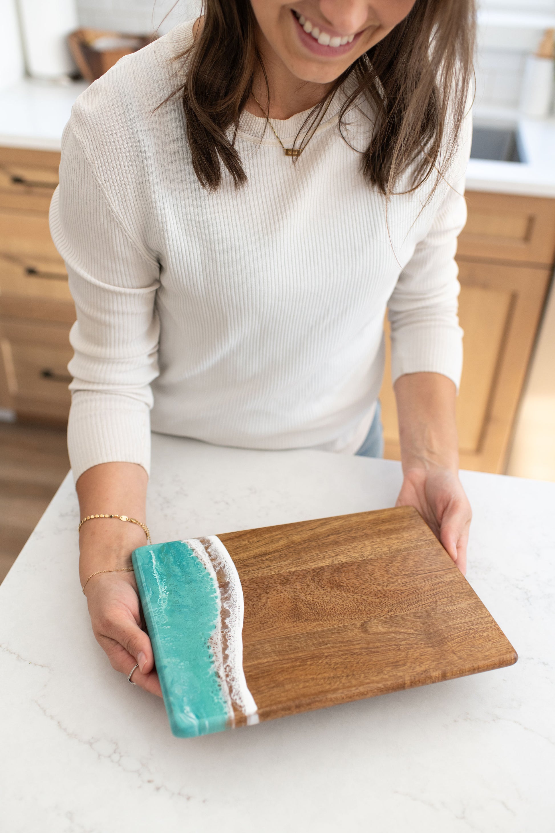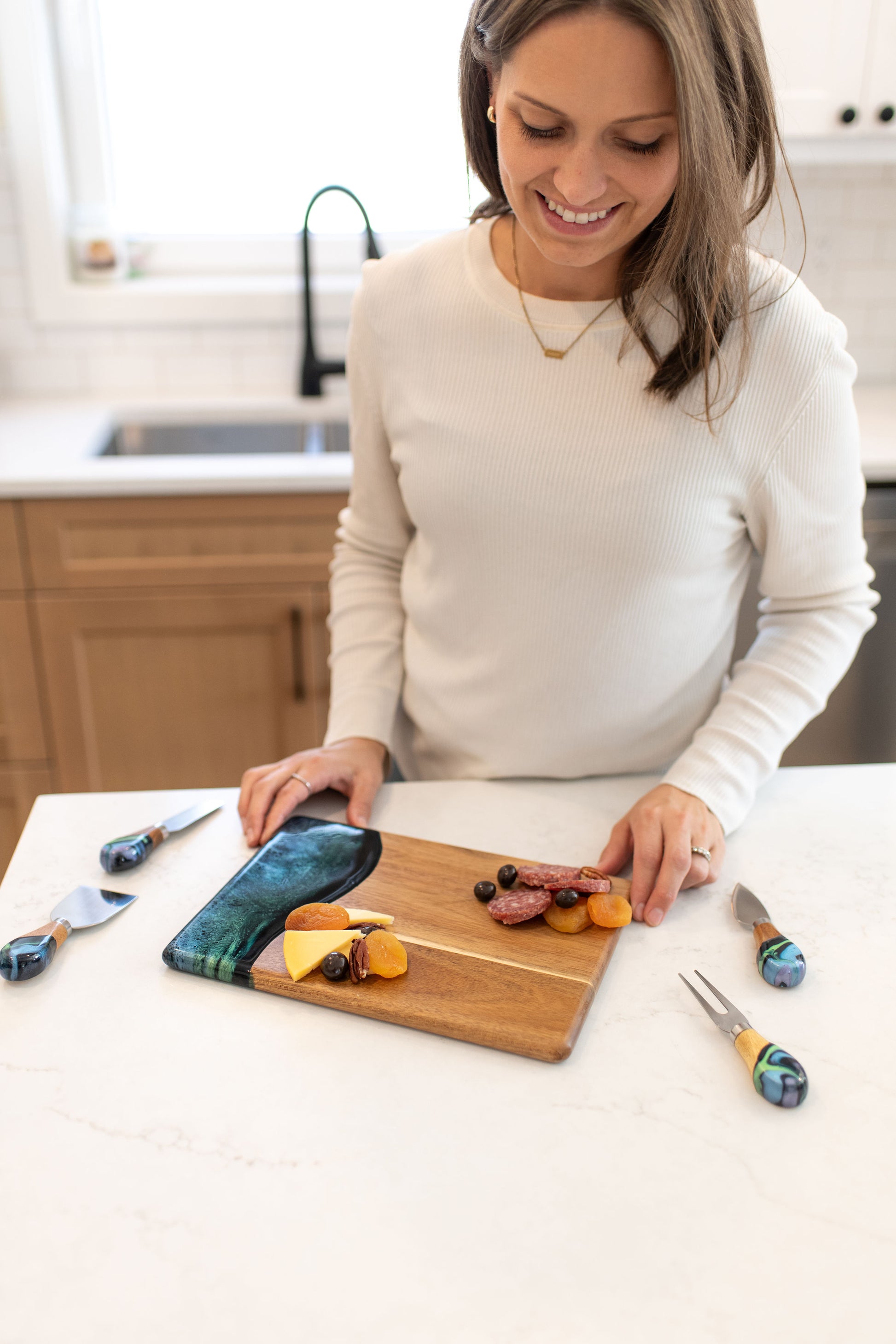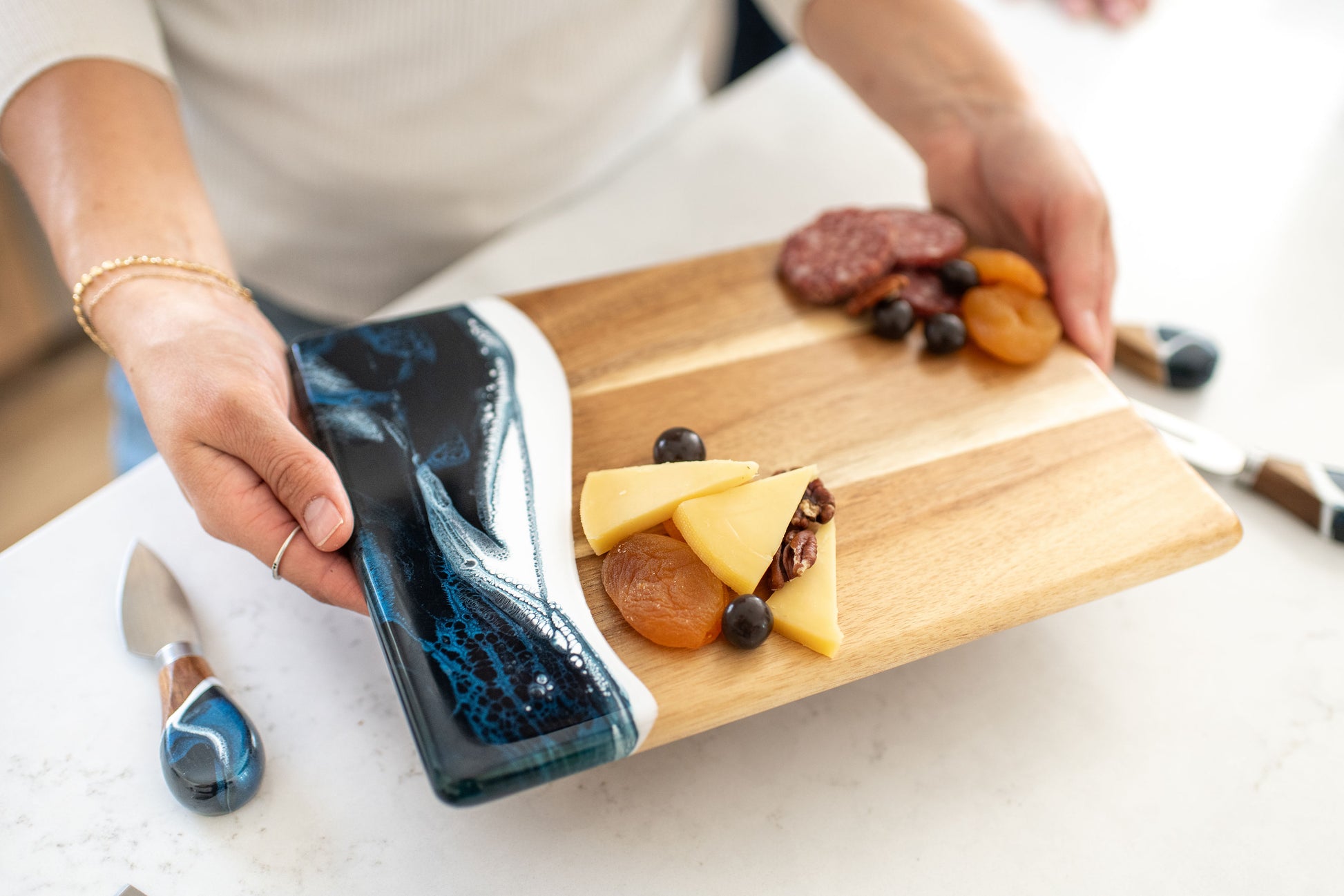These beautiful boards are not only useful but so beautiful I leave it out on my counter all the time. A true work of art and my latest favorite gift !!!
