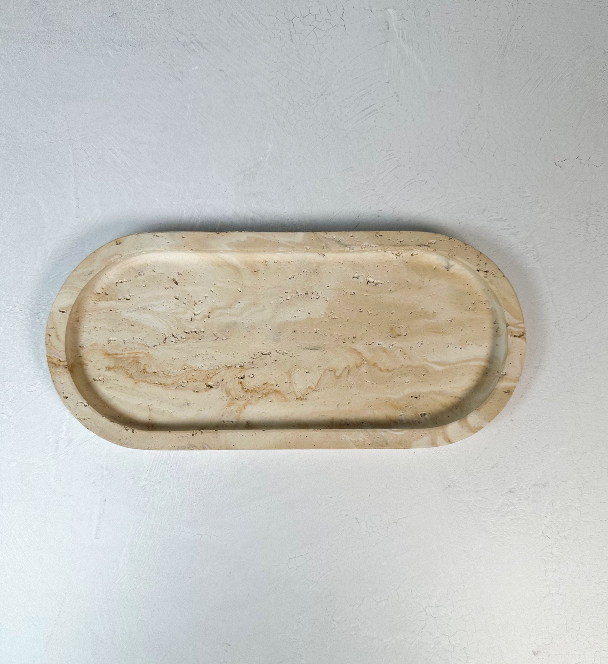 Crafted from a custom blend of stone and resin powder, each tray is hand-poured and finished by artisans, giving you the visual appeal of real stone. Due to the handmade nature, slight variations add character and uniqueness to every piece.